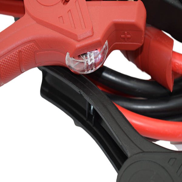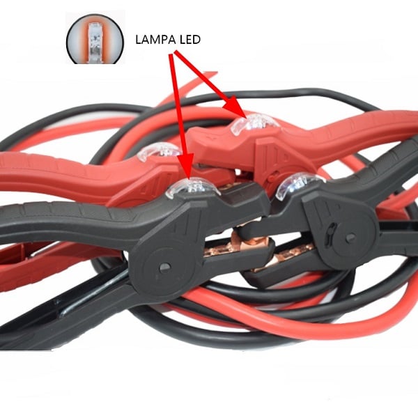 Indicare polaritate: color (izolatie cablu, izolatie maner cleme), respectiv rosu pentru pozitiv si negru