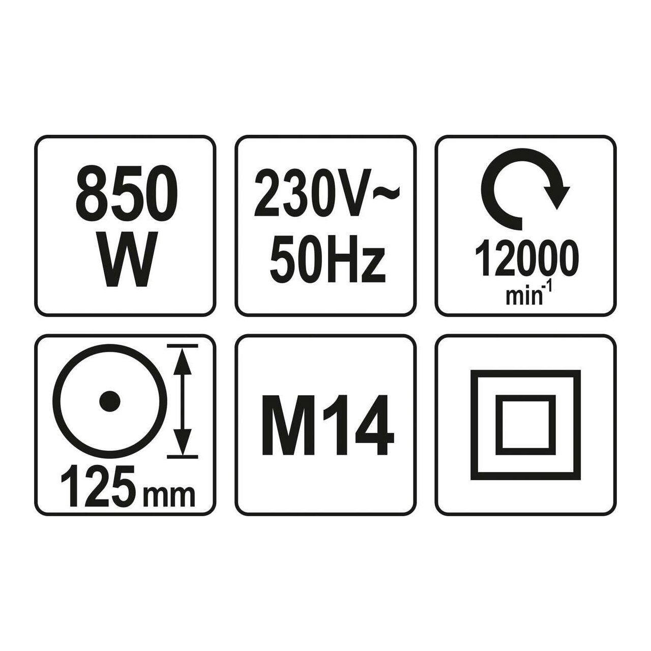 Polizor unghiular YATO cu o putere de 850W și o viteză de rotație de 12.000 rpm și un diametru al discului de 125mm. Are cel mai îngust corp subțire de pe piață , garantând o aderență fermă și, astfel, un confort ridicat și siguranță de utilizare. Proiectat pentru măcinarea și tăierea metalelor și a materialelor minerale.